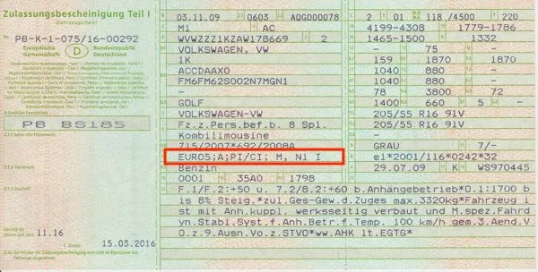 Wählen Sie die Euro-Norm Ihres Fahrzeugs aus dem Dropdown-Menü. Wir haben in der Abbildung unten angegeben, wo Sie diese finden.